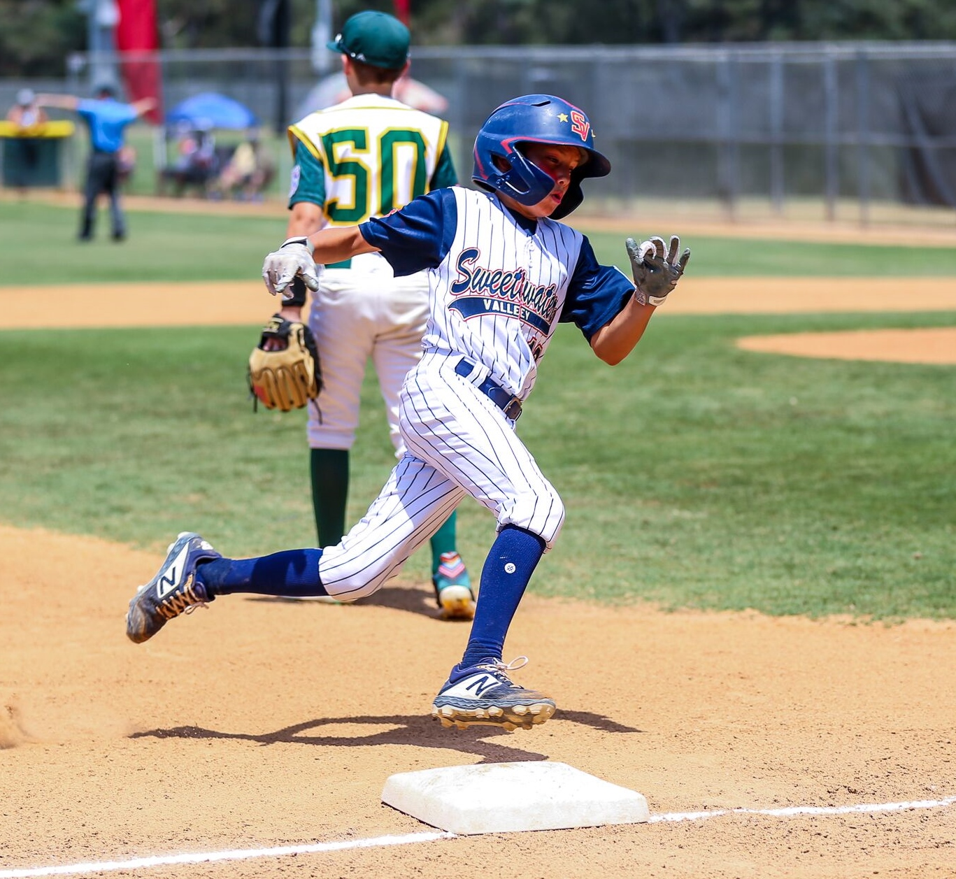 (Leo Mondragón rounds third on Sunday. Photo courtesy of Jon Bigornia.)