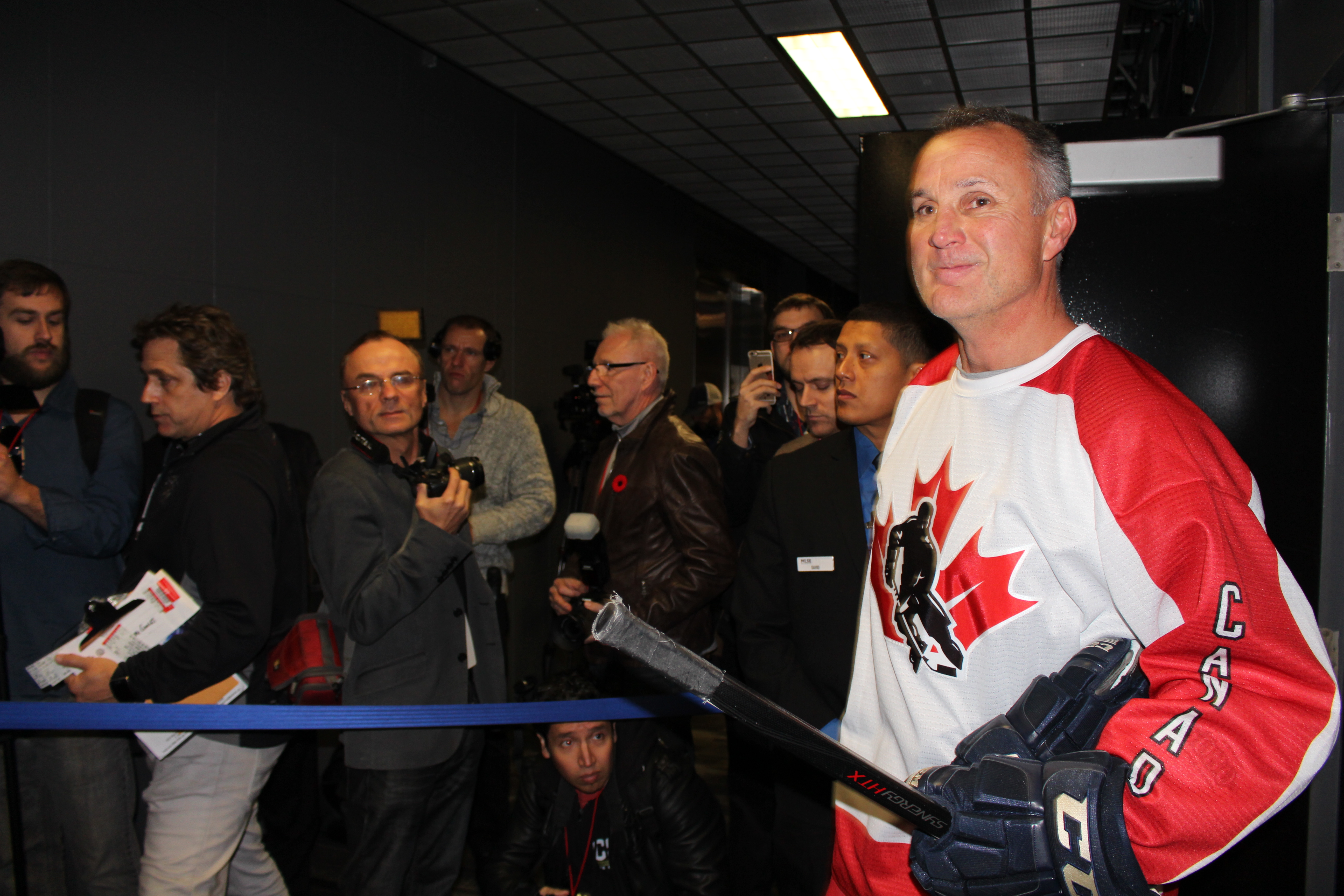 For Pavel Bure‘s World team, former Kings Petr Klima (remember him?) and Valeri Bure played (yes, Valeri Bure actually played this time!), as did Hall of FamerrCammi Granato. After the game, my friend and colleague Ryan Cowley of MakeWayForTheKings.net and I were taking photos of the legendary players with other media members as they made their way through the hallway between the locker room and the ice deep inside the Air Canada Centre. Ryan and I were talking about the former Kings players like Coffey and Murphy when I started talking about LA Kings “Legend” Valeri Bure. Calling Bure a Kings “Legend” was an inside joke that only long time LA Kings fans would understand as the Kings signed Bure to a one year contract back in 2005 for the 05-06 season but even though Bure did a photo shoot with a Kings jersey on to celebrate his signing with the team, he never played one single game for them due to a career ending back injury.