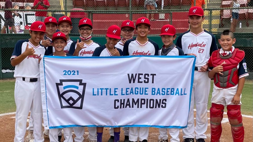 (Hawaii’s all-stars celebrate Aug. 12, after clinching a spot in the 2021 Little League World Series. Photo courtesy of ESPN.)
