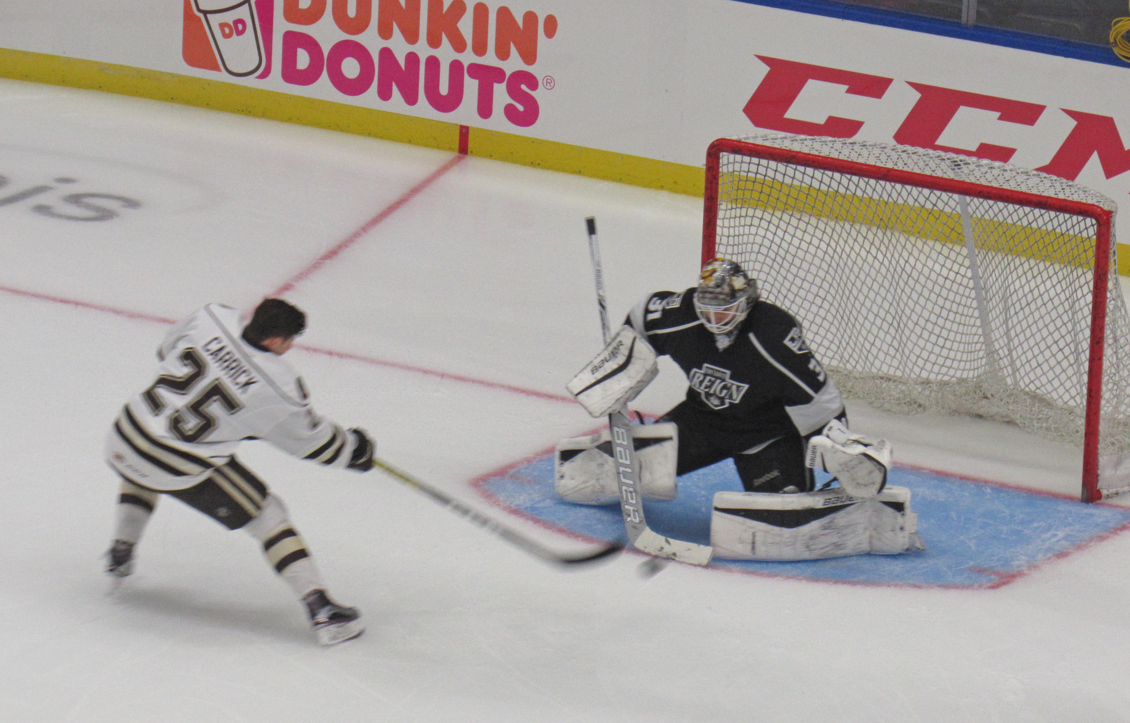 With the Ontario Reign competing with the rest of the American Hockey League in defense of the Calder Cup that they had won as the Manchester Monarchs last season, the Reign are off to a great start while on top of the Pacific Division. One of the major reasons for their current success is due to their NHL experienced goaltender Peter Budaj, (pronounced as Boo-die). Known as Budaj “The Jedi” up here in Canada and with 26 wins, 8 shutouts, (including in two games in a row just before the AHL All-Star Classic festivities had started), a goal-against average of 1.58 and a stellar save percentage of .935, Budaj has been lights out for the Reign and just the medicine they needed after the departures of the Calder Cup winning goaltending duo of Jean-Francois Berube and Patrik Bartosak.