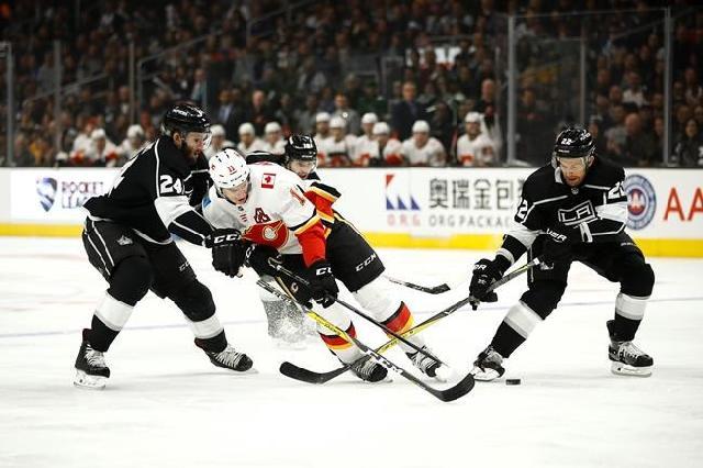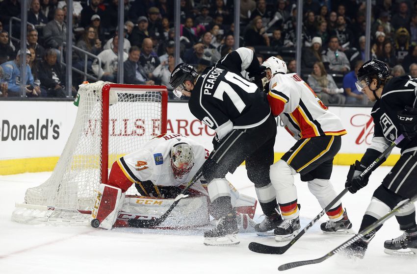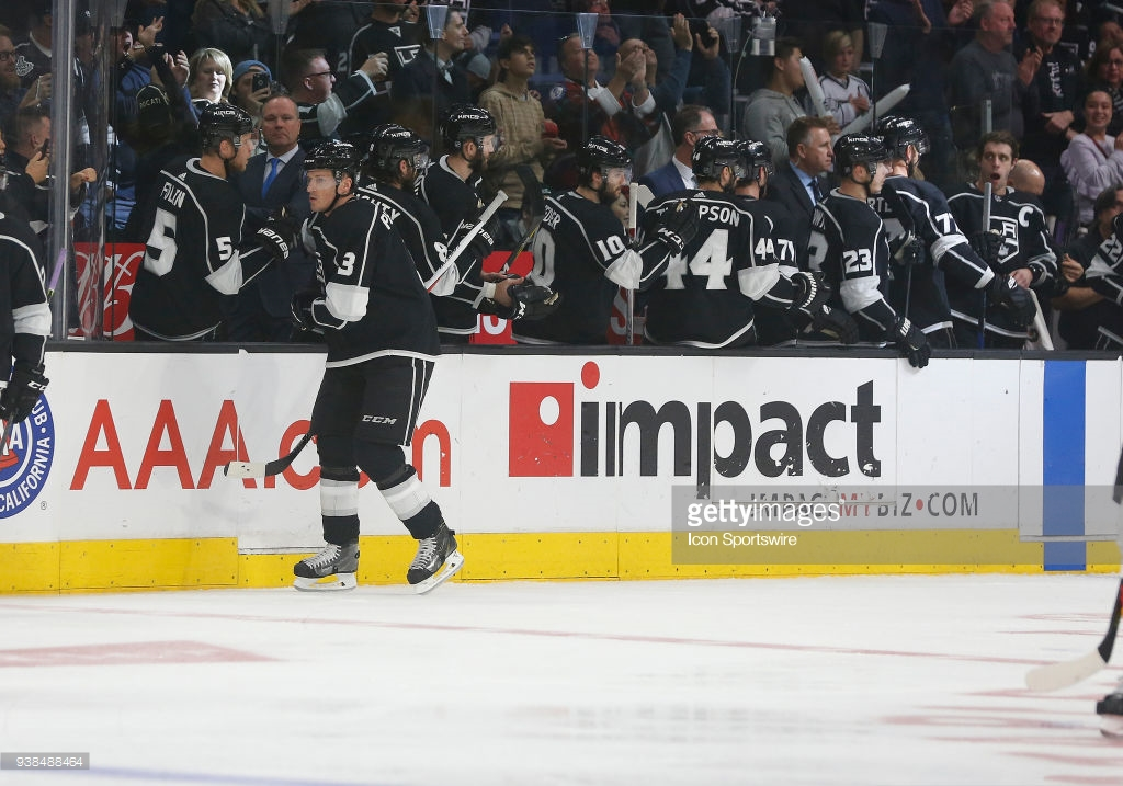 Thankfully, in the ways that count, the Kings won the second period. It took a few minutes to get in sync, but when a power play opportunity presented itself 3:59 in, it took literally 5 seconds for Adrian Kempe to win the faceoff, snap the puck back to Dion Phaneuf, and for him to slap it all the way Into the back of the net. Hooray for not giving up the first goal! And hooray for capitalizing on a power play! It set the tone for the period, where the Kings dominated play for most of the time, and the Flames responded by trying to smash them into oblivion. By the end of the second period they had outhit the Kings 22-7, but the Kings outscored them 2-0. The second goal came once again on the power play; 1:02 into an Alec Martinez penalty (who otherwise played phenomenally) 93 took his third penalty of the game giving the Kings 58 seconds after the 4-on-4. They only needed 32. Kopitar took Phaneuf’s pass (again, some beautiful power play puck movement) and thanks to a Brown screen was able to blast it by Smith. 2-0 felt so much better than 1-0, let me tell you! Phaneuf was one fight away from a Gordie Howe hat trick (and by the way things were going after the whistles, it seemed like only a matter of time). Kopitar reached his season high record of 34 goals, and with 54 assists his 88 points will give him more than a point per game average. Martinez, who was all over the ice, flipped a guy over a hunched Quick when he threatened Quick after the play. It came after Jake Muzzin headed back down the tunnel and was confirmed out of the game with an upper-body injury.