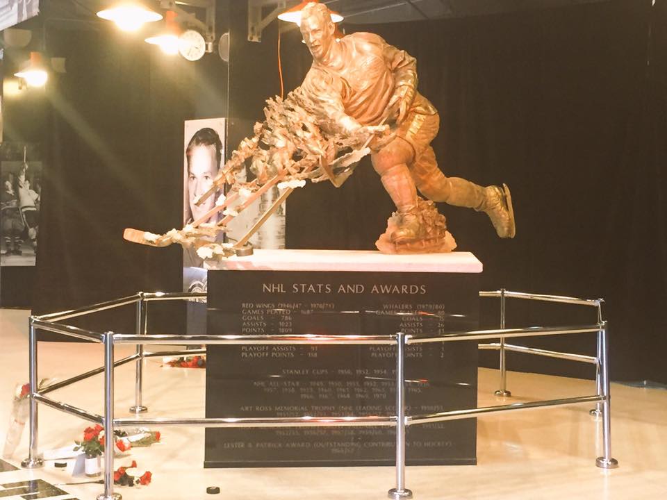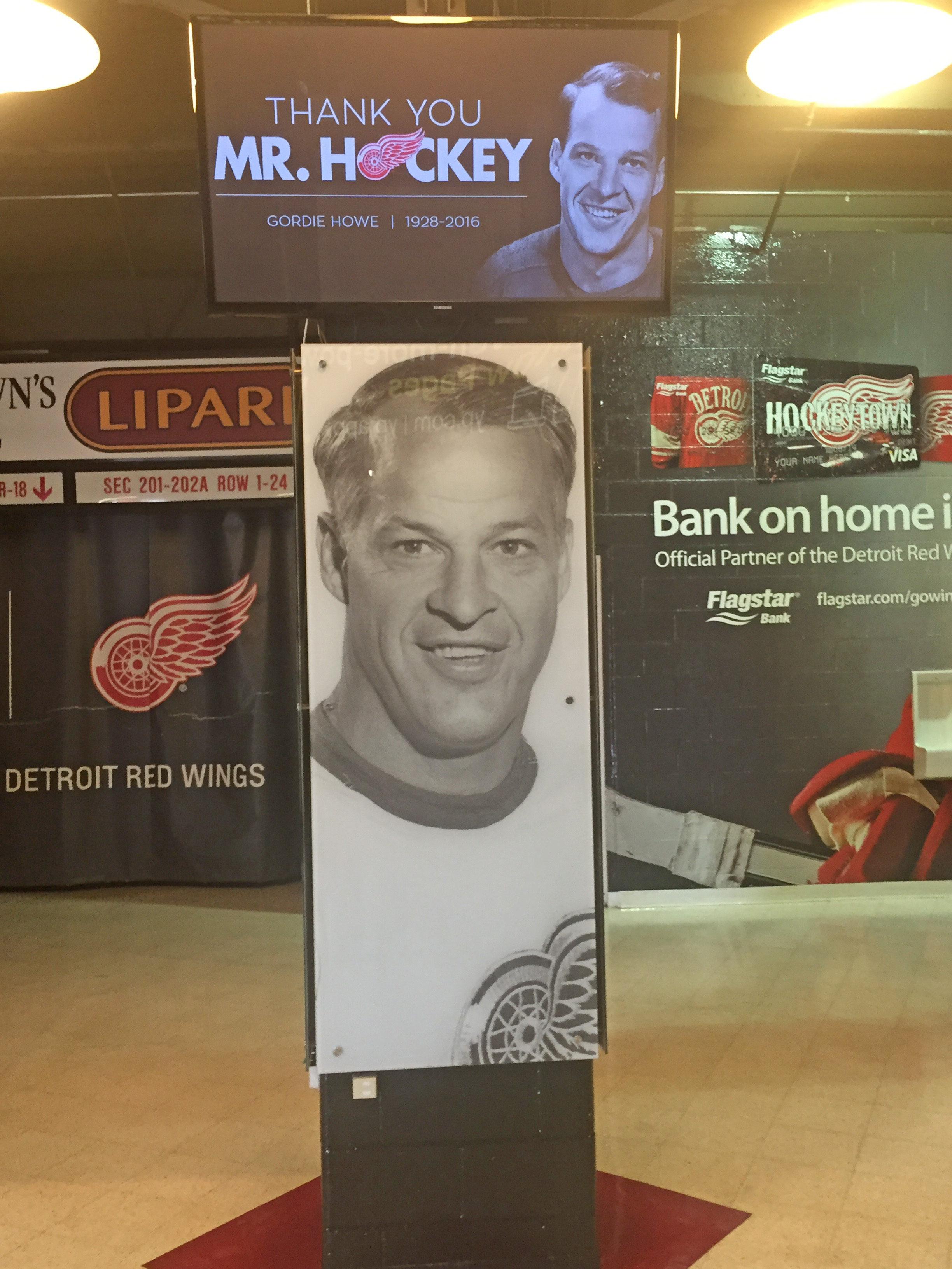 Gordie Howe was a beloved, respected and feared hockey player. He was an ambassador to the sport of hockey.  He was a loved husband, father and grandfather.  He was an idol and an icon to millions.  I never met Gordie Howe when he was alive but I always admired and respected him and his career.  What started to me as Gordie being the guy that Wayne Gretzky looked up to, became someone that I would look up to as well. Finding out that he had a history in my little hometown brings me a lot of honor and pride. As I mentioned before, I wasn’t able to meet Mr. Hockey in person when he visited Cambridge (what turned out to be many times), and me driving all the way to Detroit to pay my respects was the least I could do to honor a man that had nothing but honor.  Thank you Gordie Howe, and not just for everything you did while playing on an icy surface, but thank you for being the man that you were in life.  Professional athletes of all sports today and people from all over the world should take note of and learn from your example.  You lived and breathed for the things that you loved the most, which was family, sport and life in general. I will try my best to do the same. Thank you and farewell Gordie Howe.  You were and are well loved and will never, ever be forgotten. You will forever be one of the greatest of hockey legends whose achievements, stories and legacy will go on forever. Rest in peace and in paradise now Mr. Hockey, as the third period has ended … and you won the game.
