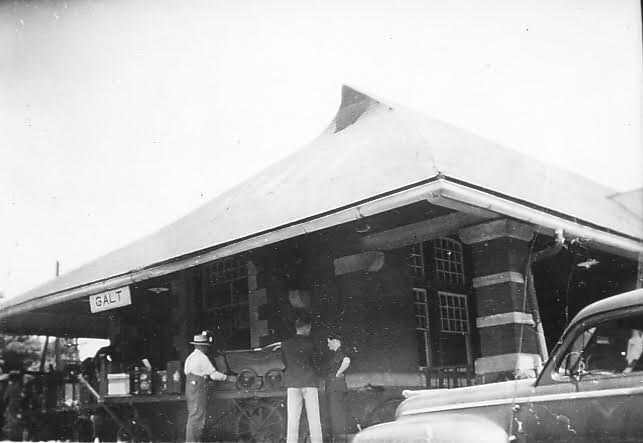 (The Galt CPR Train Station in 1945. Photo courtesy of Cambridge Archives)