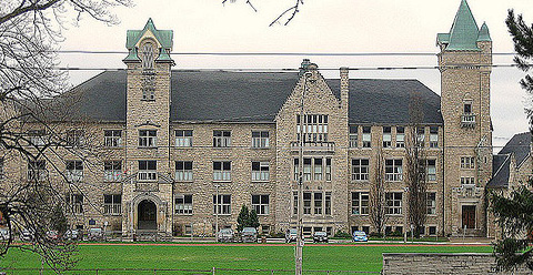 I then followed the tracks, (but not all the way since I didn’t want to get hurt as the trains still go by there frequently, so I took the nearby sidewalk instead) to a place that I used to work at, Galt Collegiate Institute, where Howe was supposed to attend high school while he played.  He decided to work instead and spent little time here but I payed homage to it just the same.